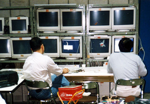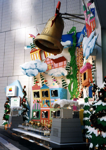 お気に入りの作品 file001 愛の泉ーマルチメディア街頭募金システム ![]() ソニービルで毎年行われる年末助け合い募金ディスプレイ。アップルコンピュータとソニービルから、『これまでにないプレゼンテーティブな募金システムを…』との依頼で1992年に制作しました。 コインを投げて映像が進展するインタラクティブな仕掛けを施した世界初のマルチメディア募金ディスプレイ。コインが泉のリンゴにあたると、悪魔が天使に変わり、豚の姿に変えられたお姫様が助けられるというドラマチックなトーリー。お姫様は豚顔から美しい姿にMorphingし、最後に天使たちが、クリスマスソングを歌うというおまけつき。アップルコンピュータから提供された十数台のQuadra950(←なつかし!)と市販のソフトだけで構築しています。街頭でのテレビ使用は、このイベント以降解禁されるというソニービルでのプレゼンテーションに新たな歴史を残した作品となりました。